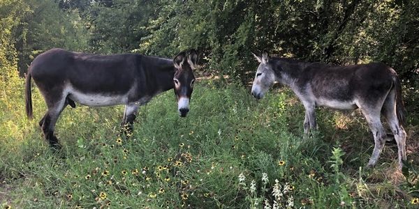 Pulled from the Bowie Auction House in 2020, Johnny (the big brown guy), Queso (the medium grey guy) and Arnold (the mini spotted donkey, rescued in 2023) are always there to help out, especially when there are extra treats that need to be eaten! But aside from that I am so appreciative of their simple company and quiet presence. Donkeys are truly the best emotional support animal. Besides, with those ears they can't help but listen to all my complaints even if they don't want to :-)